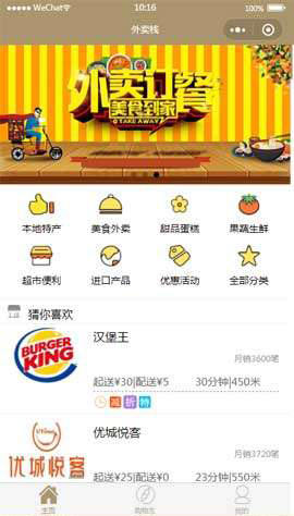 一款通用的本地特产/美食外卖/甜品蛋糕/果蔬生鲜/便利超市/进口产品外卖商城app小程序模板下载。包含:主页、分类、商品详情、订单详情、个人中心等...