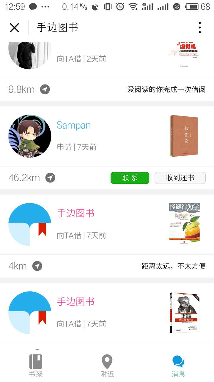 3.向附近的人借阅他们的实体书,更便捷的获取书籍。