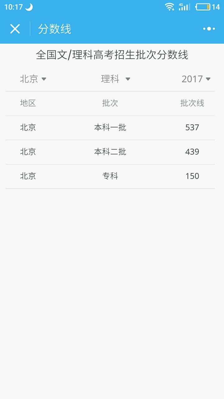 小志愿为高考毕业生提供录取批次线、大学、专业等信息查询功能。