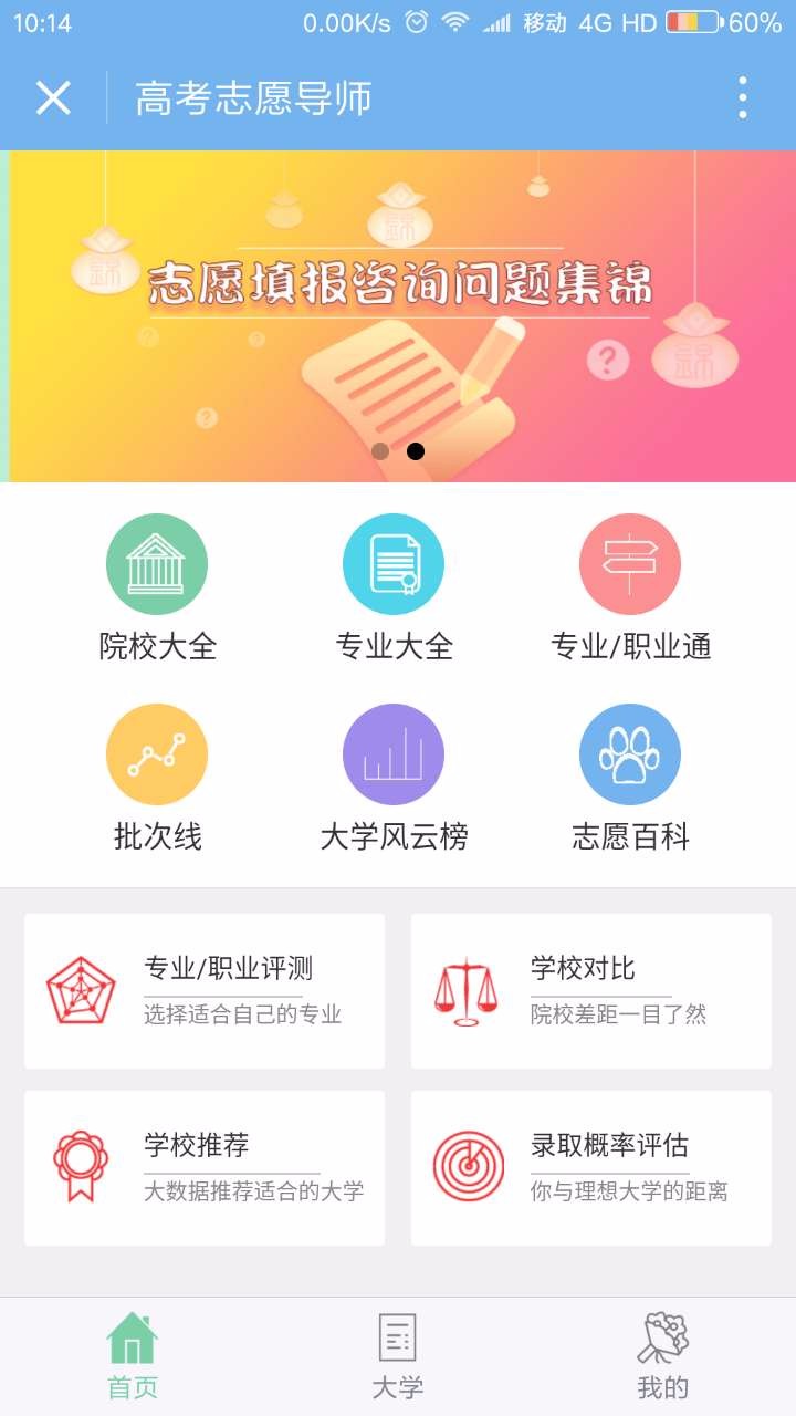 一款时下非常热门的志愿择校神器!包含各大院校信息、排名及专业查询、批次线查询、以及各项智能测评等等,依托现代大数据智能分析,助你实现就学梦。
