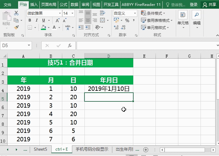 只要是有规律的单元格数据,使用Ctrl+E都能自动识别并填充剩下的单元格。