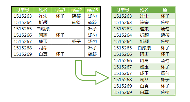Excel二维表如何转换为一维表?